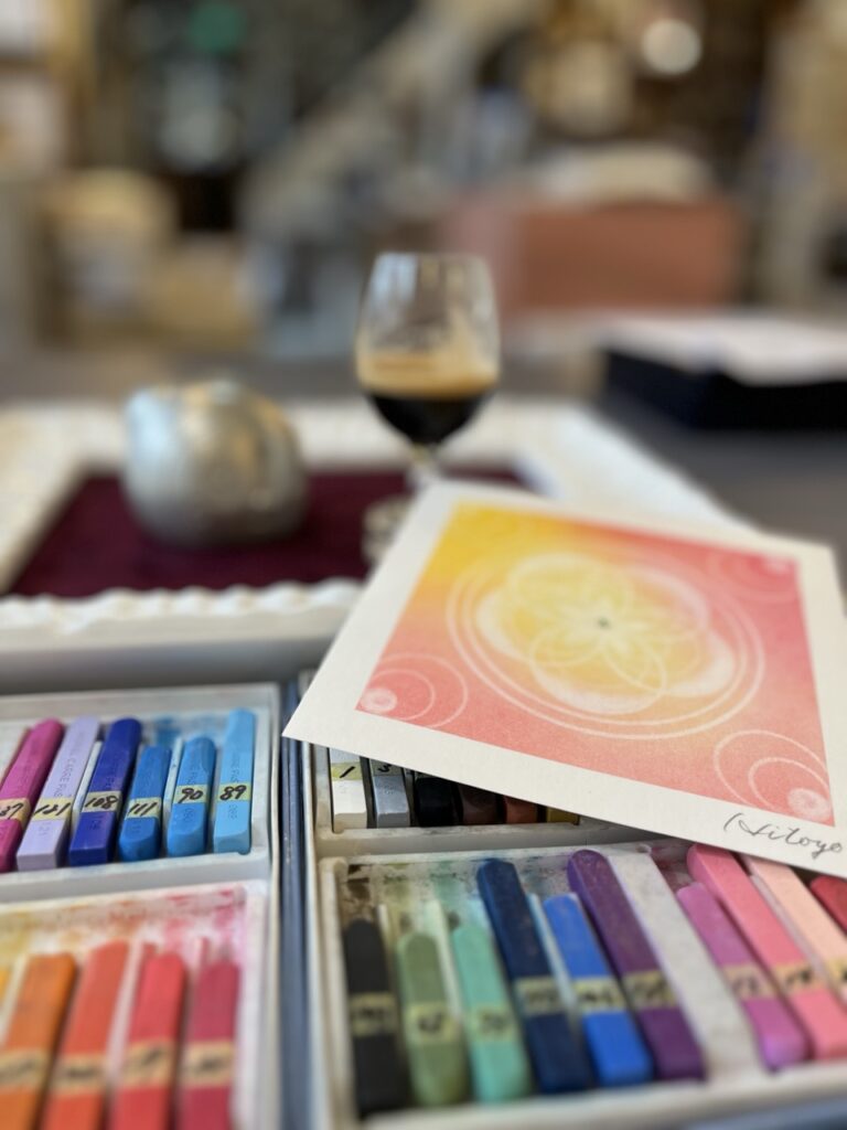 おはようございます。 予報通りの雨の朝を迎えています。 本日も、豊橋市向山にあるアートエイジギャラリーさんで パステル曼荼羅アート教室を開催しております。 10:30〜16:00頃まで、アートエイジさんの大きなテーブルでパステル曼荼羅アートを描いております。 どうぞお気軽にお立ち寄りください。体験もしていただけます。 お申し込みはLINEより ソレイユ エ シエル公式LINE カバーリンク \インスタグラム フォローお願いします / アイコンリンク カバーリンク